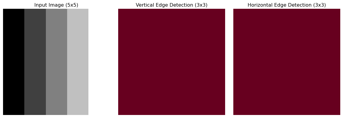 Key Insight: Notice how the vertical gradient produces strong responses in the vertical edge detector, but zero response in the horizontal detector. In CNNs, these kernels are learned automatically during training.