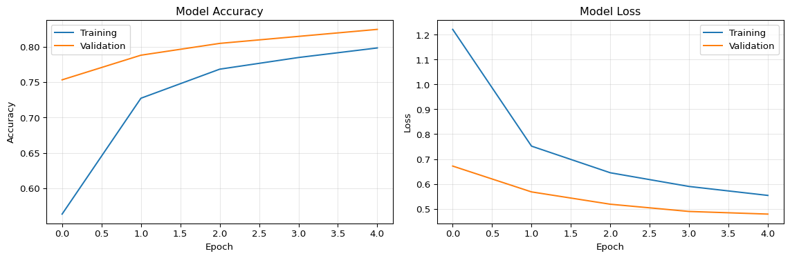 Overfitting Without Regularization: Large gap between training (97%) and validation (91%) accuracy signals overfitting. Use data augmentation, dropout, or early stopping to improve generalization.