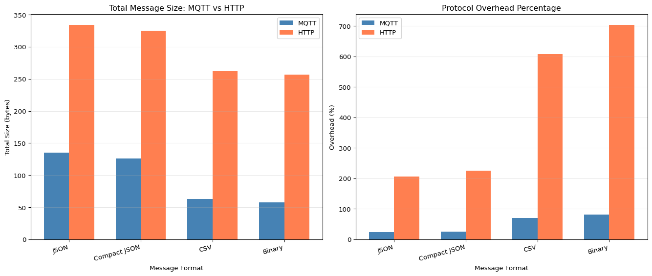 WiFi connectivity operates in two modes: station mode joins existing networks for cloud communication, while access point mode creates local networks for direct device-to-device interaction. For IoT communication, two protocols dominate: HTTP (request/response, stateless, good for infrequent updates) and MQTT (publish/subscribe, persistent connection, ideal for real-time sensor streams). MQTT’s lightweight design reduces overhead from ~200 bytes (HTTP headers) to ~2 bytes per message, crucial for battery-powered deployments.