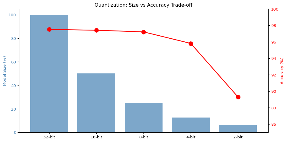 | 4-bit | 8x | 1-3% | Extreme resource constraints |